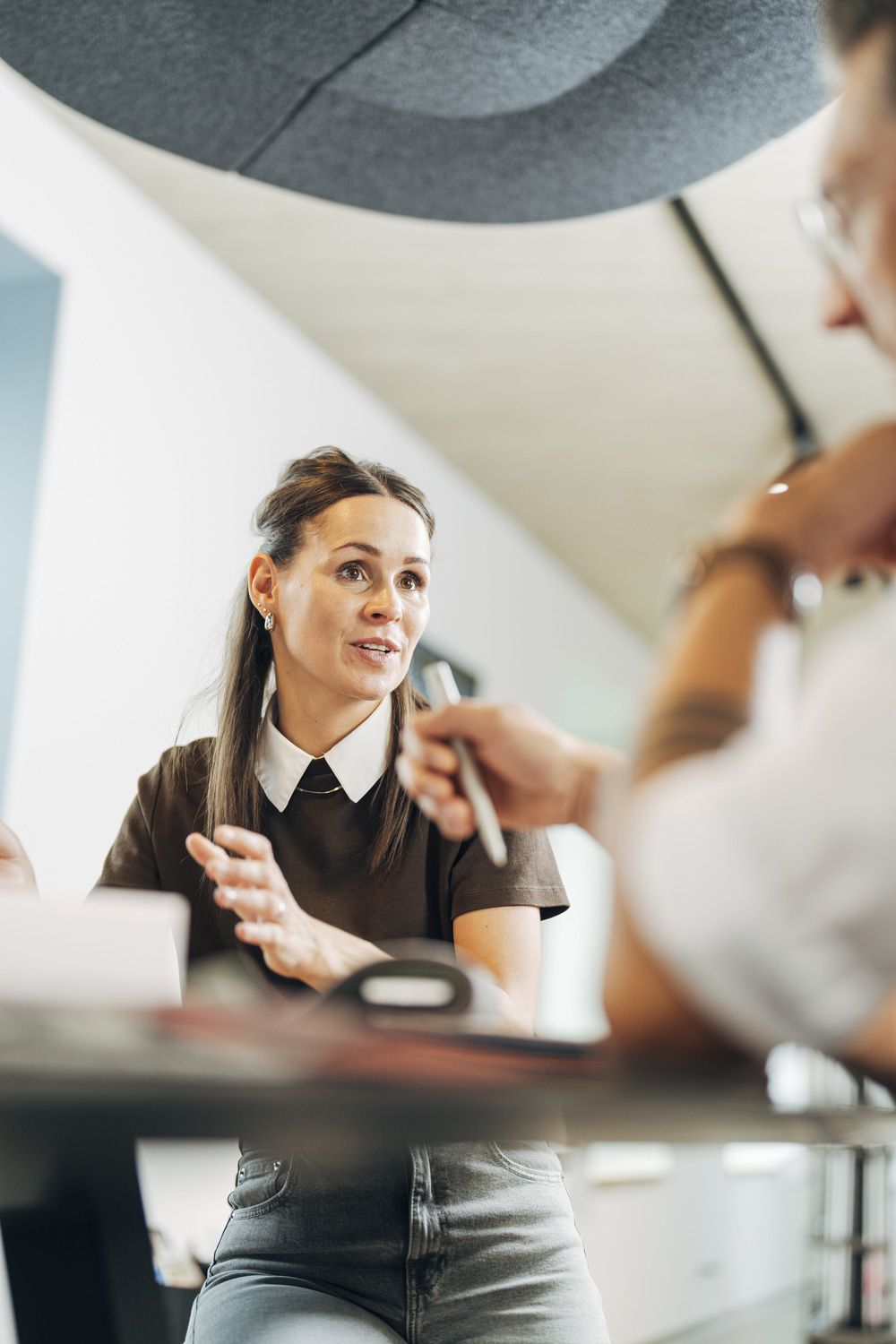 Im Objekt gibt es eine Auswahl an klassischen Einzel- und 2er Büros sowie Arbeitsplätze auf der offenen Fläche. Die Einzelbüros verfügen über eine integrierte Besprechungsmöglickeit. Je nach Wunsch der Mitarbeitenden wurden klassische Besprechungssettings geplant oder sogenannte Work-Lounges. Diese Form der Zusammenarbeit auf Augenhöhe schafft maximale Nähe und Vertrauen für alle Teilnehmenden. Die Arbeitsplätze auf der offenen Fläche verfügen angrenzend über soziale Treffpunkte oder Work-Lounges, in die sich die Mitarbeitenden zu spontanen Gesprächen, Meetings oder einfach mal zum Entspannen zurückziehen können.