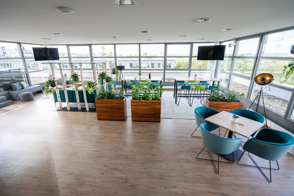 Hier können ab sofort interne Veranstaltungen, Mittagspausen, Kundenveranstaltungen und besondere Abendevents zum Netzwerken stattfinden. Das Mobiliar ist flexibel, das Setting je nach Bedarf anpassbar.