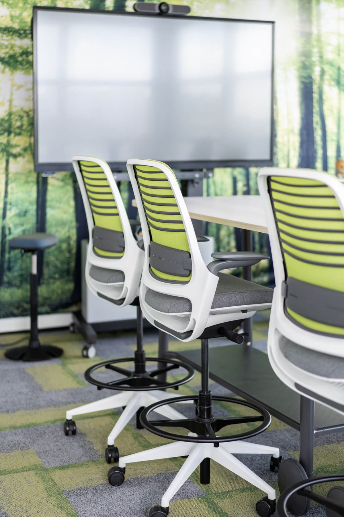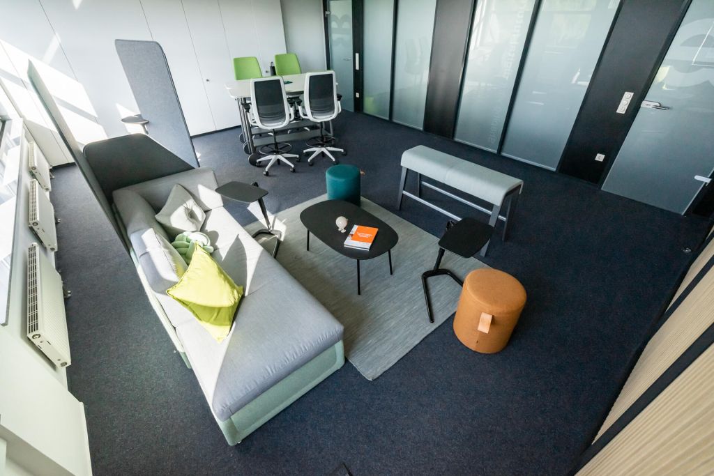 Im Vorfeld wurden von uns bereits alle Wünsche und Anforderungen geklärt, abgestimmt und die wichtigsten Projektziele definiert: Wertschätzung, flexibel bleiben für Wachstum, Nachhaltigkeit sichtbar und erlebbar machen sowie Schaffung eines Veranstaltungsbereichs, der flexibel nutzbar ist. Für uns hieß es innerhalb weniger Wochen, das vorgedachte Konzept in die vorhandene Raumstruktur zu adaptieren, um die beste Lösung für unseren Kunden zu erreichen.