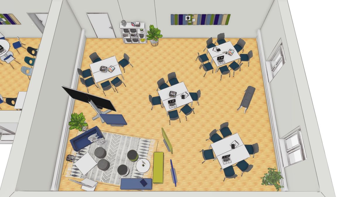 Einladende, freundliche Raumgestaltung für eine motivierende Lernatmosphäre.